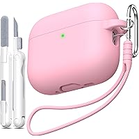 MHYALUDO for AirPods Pro 3 Case 2025, Military Grade Soft Silicone Shock-Absorbing for AirPods Pro 3rd Generation (USB-C Cable) with Lanyard and Cleaning Kit,Front LED Visible, Pink