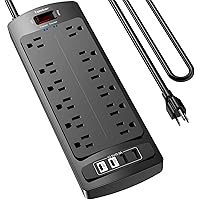 6 Ft Extension Cord Power Strip, Teiobar Surge Protector with 12 AC Outlets and 4 USB Ports for Home, Office, Dorm Essentials, 1875W/15A, 2700 Joules, ETL Listed, Black